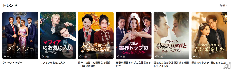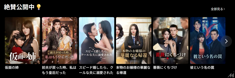 コンテンツは「秘密の億万長者との結婚」「見下されていた婿の復讐」「狼人間との禁断のロマンス」など、感情に強く訴えるメロドラマが中心です。低予算で制作され、無名俳優を起用しながらも、毎話クリフハンガーで終わる構成が視聴者を引きつけ、「ReelShort」は2025年に3.7億ダウンロード・収益7億ドルを達成しました。