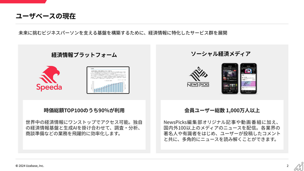 NewsPicksとSpeedaを運営するユーザベースは、パブリッシャーでありプラットフォーマーであり、かつAI技術者を社内に抱えるという稀有な立ち位置にあります。